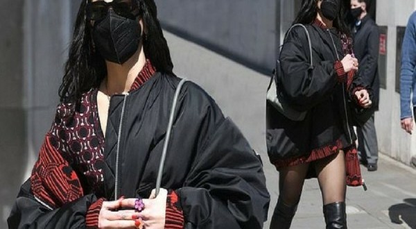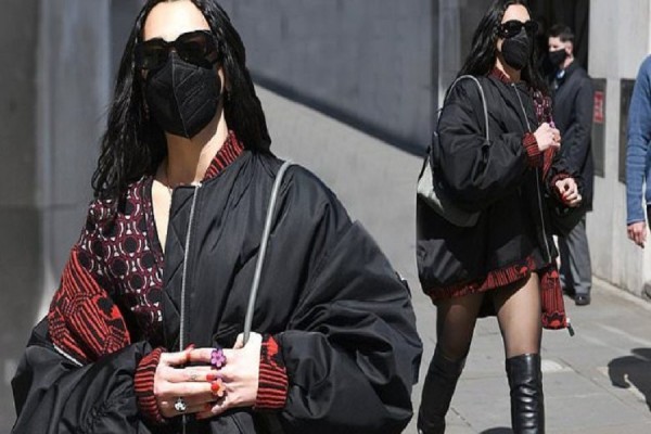 Ajo e kombinoi veshjen me një xhaketë të përmasave të mëdha, dhe mbrojti fytyrën e saj pas një maske dhe syze dielli të zeza.