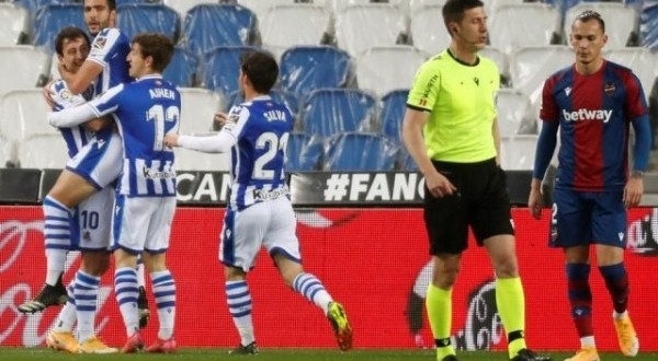 Futbollistët e Real Sociedad fituan në shtëpi kundër Levante me rezultat 1:0 në xhiron 26 të La Ligës spanjolle.