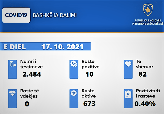 Ministria e Shëndetësisë, sipas të dhënave nga Instituti Kombëtar i Shëndetësisë Publike të Kosovës, ka informuar se nga 2.484 testime, 10 qytetarë kanë rezultuar pozitiv në COVID-19.