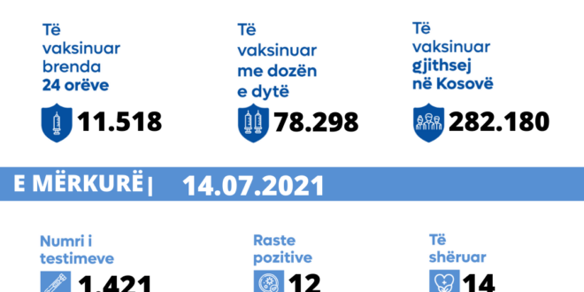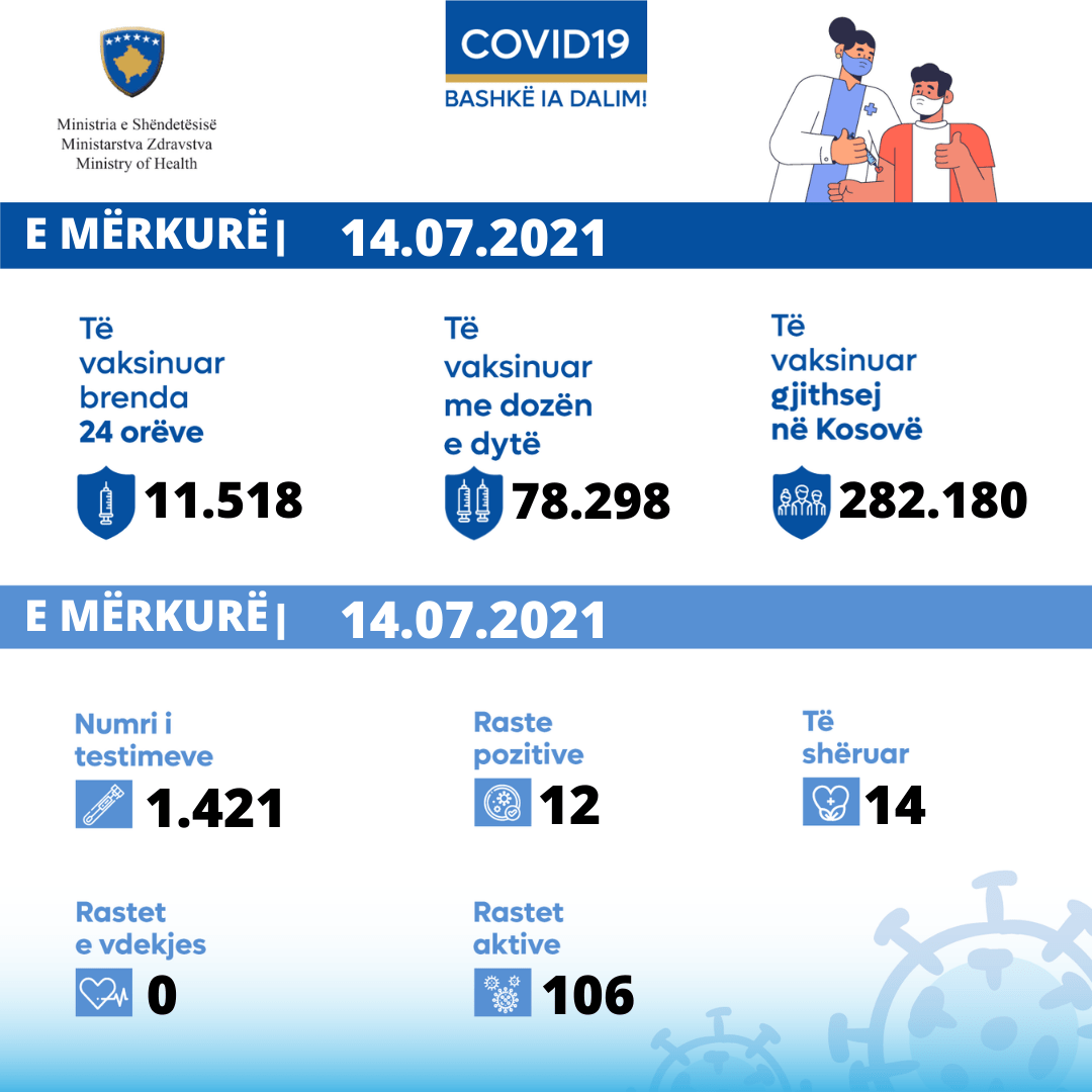 Sot janë shëruar 14 qytetarë, derisa numri i përgjithshëm i të shëruarve është 105.509.