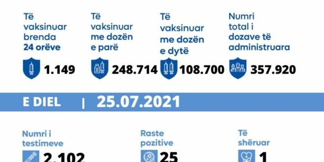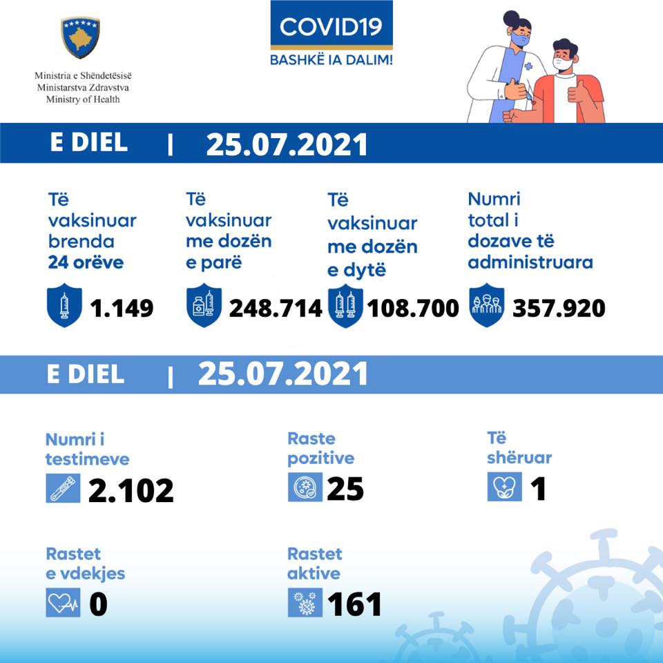 25 KORRIK 2021: MINISTRIA E SHËNDETËSISË, SIPAS TË DHËNAVE NGA INSTITUTI KOMBËTAR I SHËNDETËSISË PUBLIKE TË KOSOVËS, INFORMON: