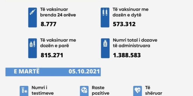 Mi05 Tetor 2021: Ministria e Shëndetësisë, sipas të dhënave nga Instituti Kombëtar i Shëndetësisë Publike të Kosovës, informon: