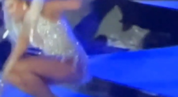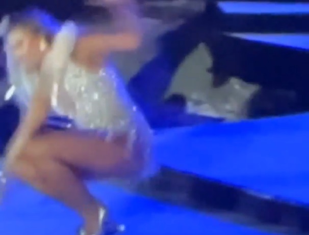 Gjatë lëvizjes në skenë, këngëtarja nuk e ka vërejtur një shkallë.