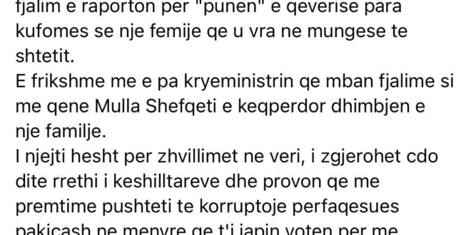 Gazetari Arben Ahmeti në një postim në facebook ka kritikuar Kryeministrin Kurti në lidhje me fjalimin që mbaji sot gjatë varrimit të 18 vjeçares nga Ferizaji./DielliNews.info