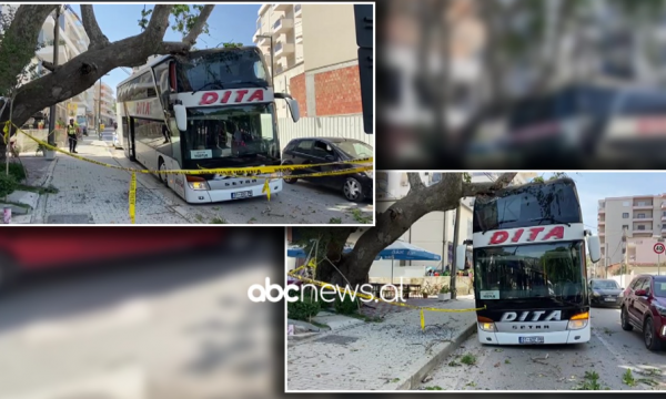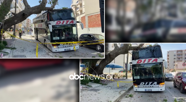 Një autobus me turistë në Vlorë është përplasur me një pemë, degët e së cilës janë zgjatur në rrugë.
