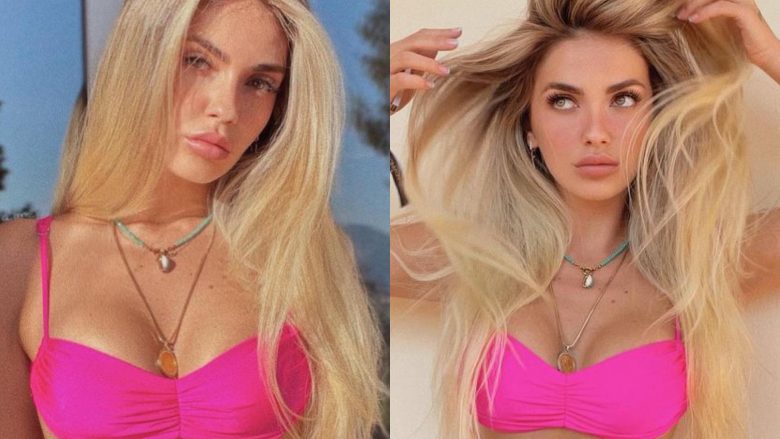Beatrix shihet në disa poza në bikini ngjyrë rozë, ku përveç ndryshimit të flokëve, vëmendje morën edhe linjat e saj të trupit.