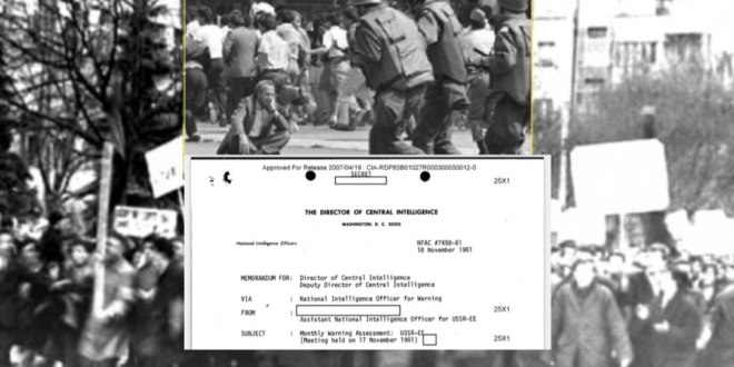 Demokracia.com ka siguruar dokumentin e CIA-s, ku analizohet demonstrata e 1981, roli i regjimit të Enver Hoxhës dhe Bashkimit Sovjetik për situatën e krijuar asokohe në Kosovë. Sipas CIA-s, 8000 trupa të rregullta kishin arritur ta frenojnë, por jo edhe ta eliminonin dhunën që kishte shpërthyer më mars të 1981-ës. Po ashtu, në raportim e inteligjencës amerikane thuhet se Shqipëria përpos mbështetjes morale, asokohe nuk kishte ofruar diçka tjetër për shqiptarët e Kosovës.