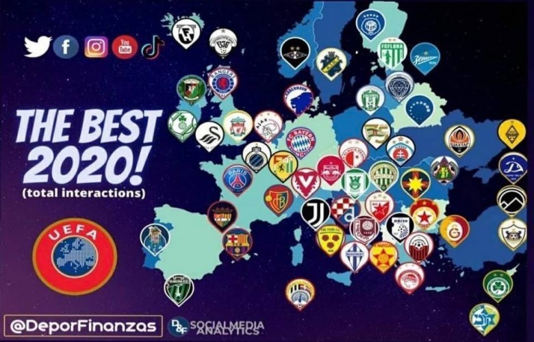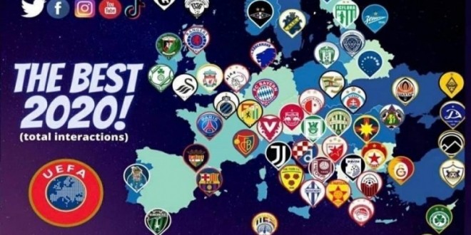 Në një hulumtim të bërë nga një kompani me renome siq është DP në bashkëpunim edhe me organin më të lartë të futbollit UEFA, është krijuar një hart me klubet më të ndjekura nga secili shtet në të gjitha rrjetet sociale.