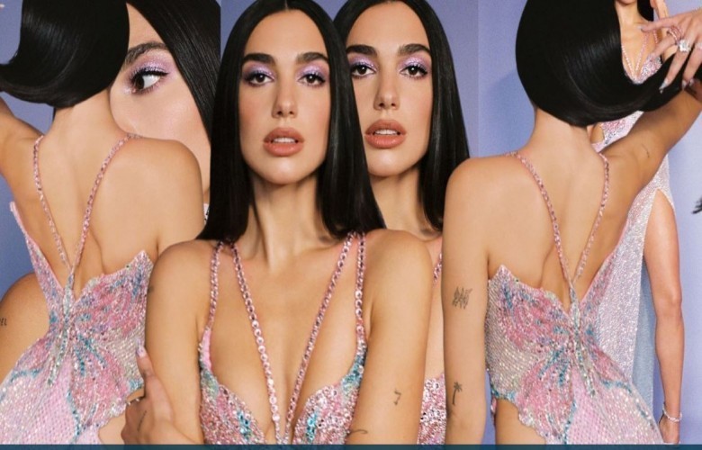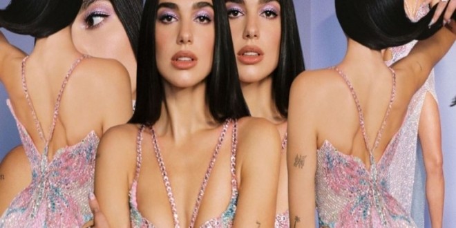 E veshur me fustanin e dizajnuar pikërisht për të nga marka e njohur “Versace”, Dua Lipa po poston imazhe të shumta.
