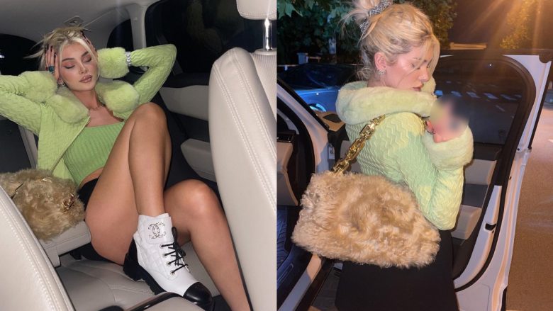 Në imazhet e fundit, Istrefi mund të shihet në veturën e saj, teksa merr poza ngacmuese për fansat.