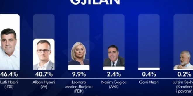 Sipas EXIT POLL-it të realizuar nga RTV Dukagjini dhe kompania UBO-Consulting del që Komuna e Gjilanit, shkon në balotazh.