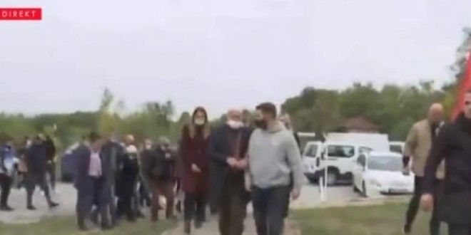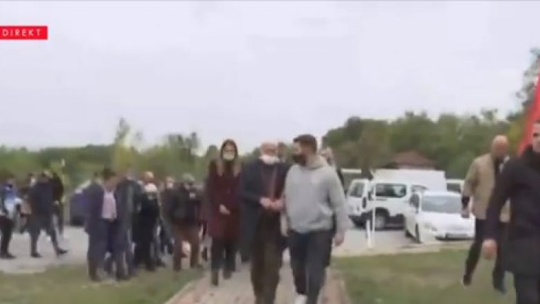 Anëtarët e familjes Jashari, të prirë nga Rifat Jashari kanë shkuar në qendrën e votimit me flamurin kombëtar.