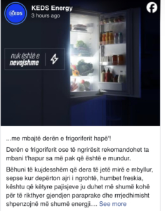 Derisa qytetarët po ankohen për çmimet e larta të faturave të rrymës, sot KEDS ka dalë me një rekomandim që “nuk është e nevojshme me mbajtë derën e frigoriferit hapë”.