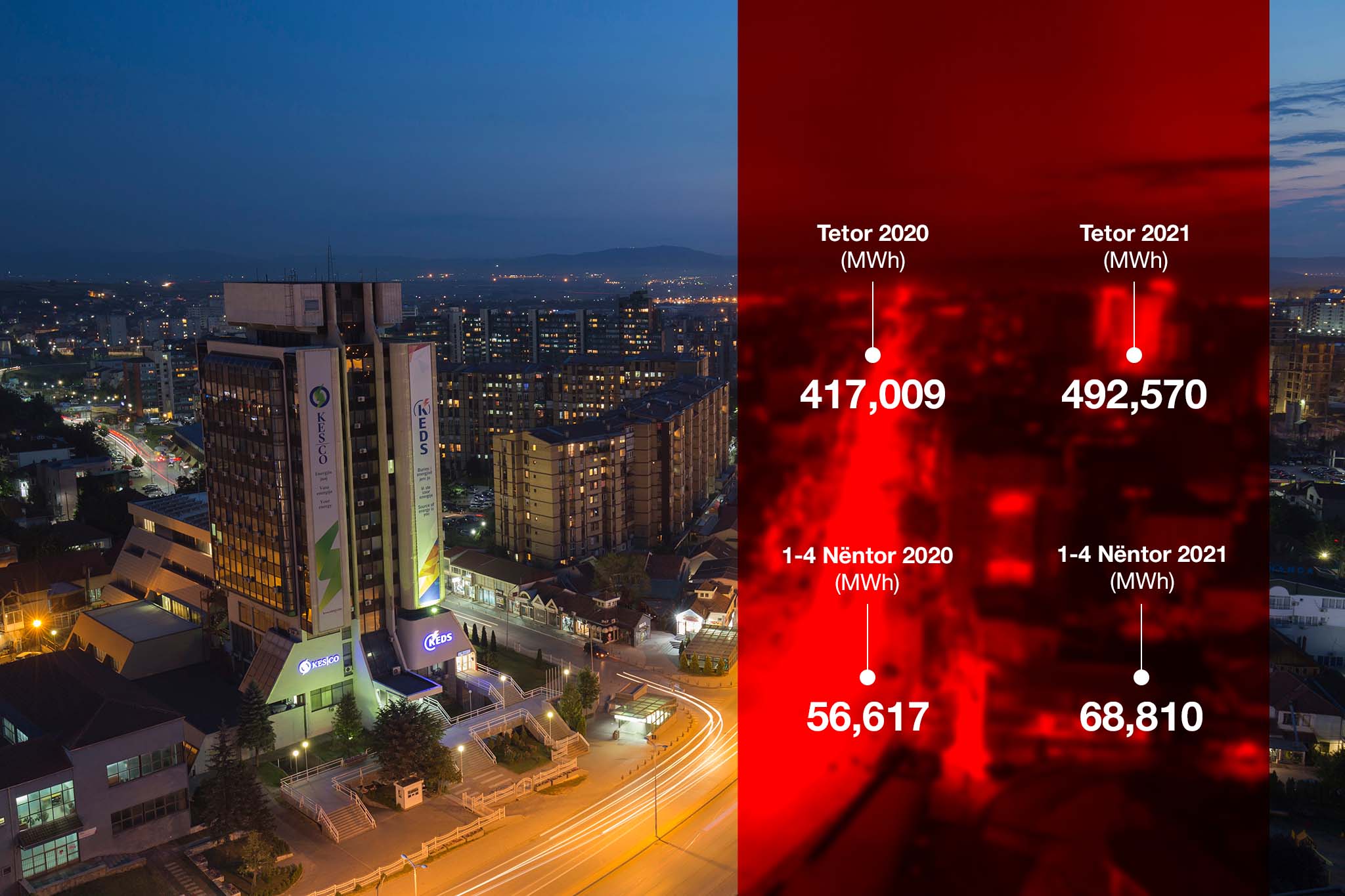 Konsumi i energjisë elektrike në ditët e para të nëntorit është rritur në nivele të larta, mbi 21 për qind krahasuar me periudhën e njëjtë të vitit të kaluar.