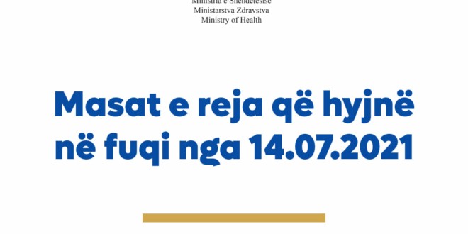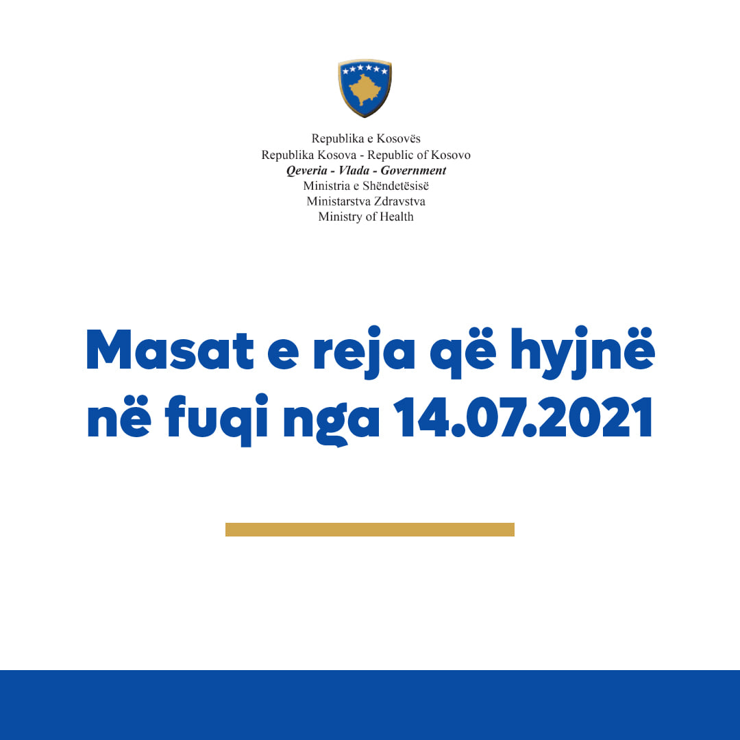 MINISTRIA E SHËNDETËSISË By Dielli.info - 15 Korrik, 2021 - in Shëndetësi Ministria e shëndetësisë njofton për masat e reja Për tu informuar rreth secilës masë luteni të klikoni në vegzën më poshtë:/DielliNews.info https://msh.rks-gov.net/…/Masat-e-reja-anti-COVID-19…