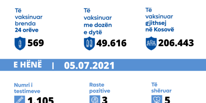ℹ Prej fillimit të vaksinimit në të gjitha qytetet e Kosovës janë dhënë 206.443 doza të vaksinës.