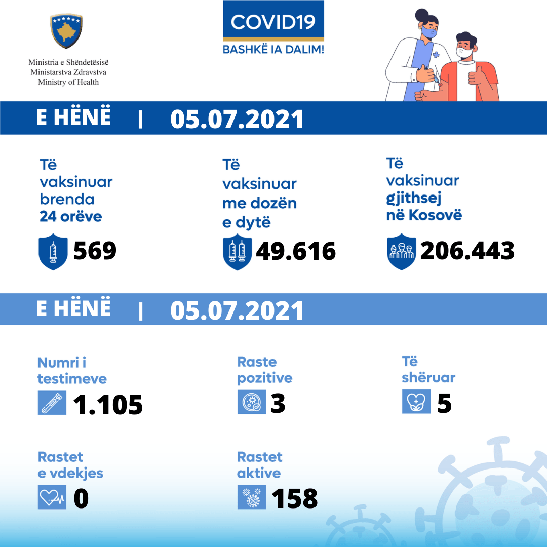 ℹ Sot janë shëruar 5 qytetarë, derisa numri i përgjithshëm i të shëruarve është 105.381.
