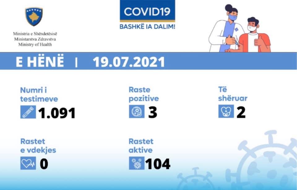 Nga 1.091 testime, 3 qytetarë kanë rezultuar pozitiv me virusin COVID-19.