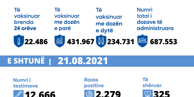 Në 24 orët e fundit janë dhënë 22.486 doza të vaksinës kundër COVID-19.