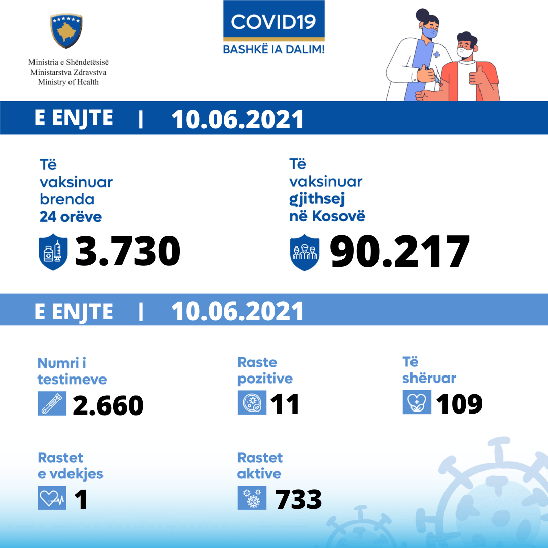 Nga 2.660 testime, 11 qytetarë kanë rezultuar pozitiv me virusin COVID-19.