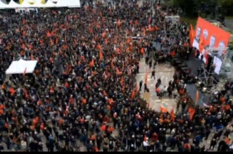 Me qindra qytetarë shqiptarë nga të gjitha trevat janë mbledhur në sheshin “Skënderbej” në Tiranë, në një protestë të madhe në mbështetje të ...