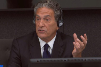 Paul Williams, avokati ndërkombëtar dhe këshilltari ligjor i delegacionit shqiptar në Rambuje duke u marrë në pyetje nga trupi gjykues në Dhomat e ...