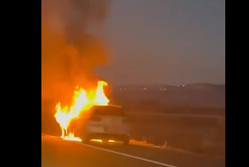 Një veturë është përfshirë nga zjarri pak momente më parë në autosdradën “Arben Xhaferi”, në afërsi të Ferizajt.
