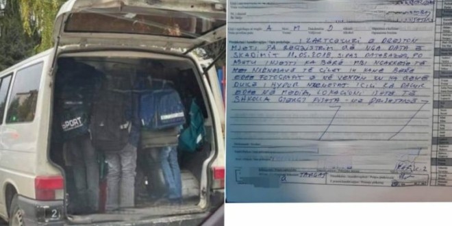 PO TRANSPORTONTE NXËNËSIT E NË MËNYRË TË PASIGURT, POLICIA GJOBIT SHOFERIN DHE I KONFISKON TARGAT E AUTOMJETIT