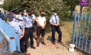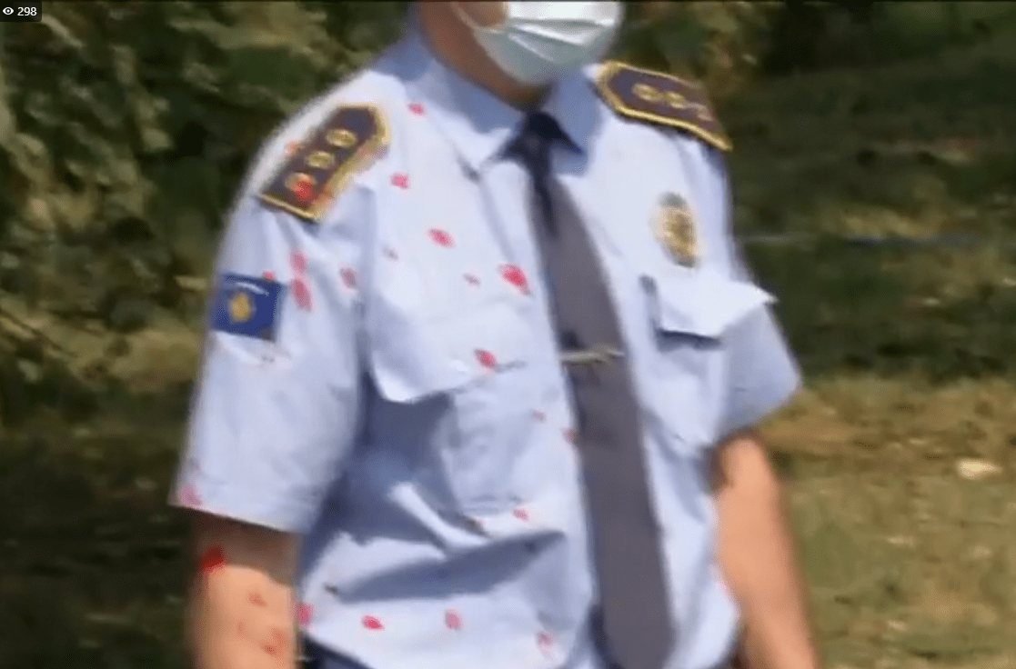 Protestuesit kanë gjuajtur edhe ngjyrë të kuqe drejt policise, duke brohoritur ‘Policia i ka duart me gjak’.