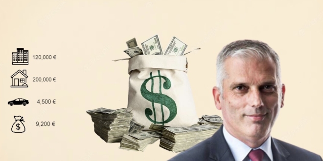Tri banesat që posedon, kapin vlerën e 120 mijë eurove, ndërsa shtëpia e cila është në pronësi të prindit të tij, kushton 200 mijë euro.