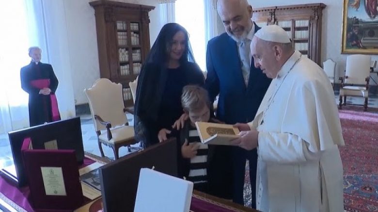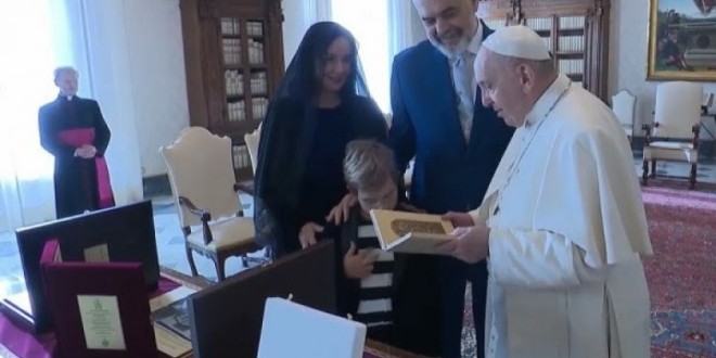 Kryeministri i Shqipërisë, Edi Rama i shoqëruar nga bashkëshortja Linda dhe djali i vogël Zaho, janë pritur pasditen e së shtunës në Vatikan nga Ati i Shenjtë, Papa Francesco.