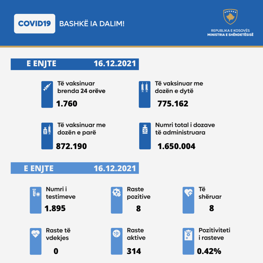 Prej fillimit të vaksinimit në të gjitha qytetet e Kosovës janë dhënë 1.650.004 doza të vaksinës.