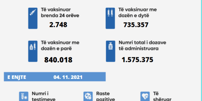 Prej fillimit të vaksinimit në të gjitha qytetet e Kosovës janë dhënë 1.575.375 doza të vaksinës.
