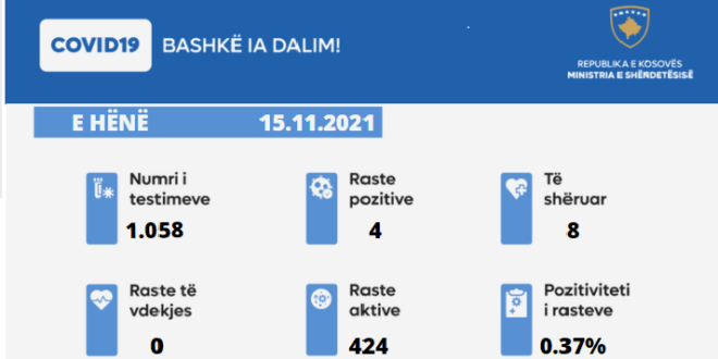 15 Nëntor 2021: Ministria e Shëndetësisë, sipas të dhënave nga Instituti Kombëtar i Shëndetësisë Publike të Kosovës, informon: