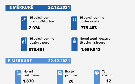 ℹ Në 24 orët e fundit janë dhënë 2.074 doza të vaksinës kundër COVID-19.