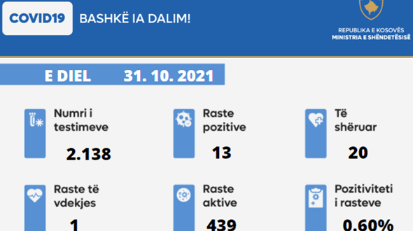 Nga 2.138 testime, 13 qytetarë kanë rezultuar pozitiv me COVID-19.