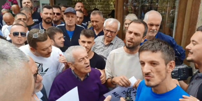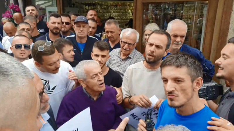 “Shko në Prishtinë, në atë vend të degjeneruar”, dëgjohet njëri nga protestuesit teksa i drejtohet Krasniqit, para se ta përzënë me dhunë nga vendi ku ndodhej ai.