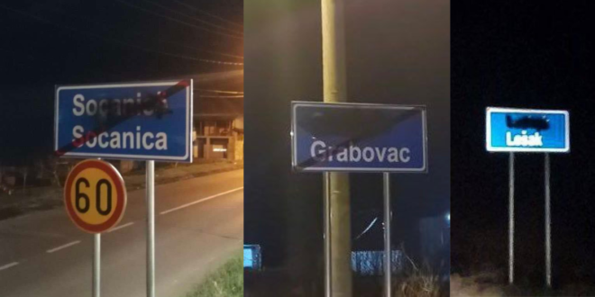Tabelat me emërtimet e vendbanimeve me shumicë serbe në komunat veriore të enjten janë zëvendësuar me tabela, në të cilat, emri i vendbanimit shkruhej edhe në gjuhën shqipe.
