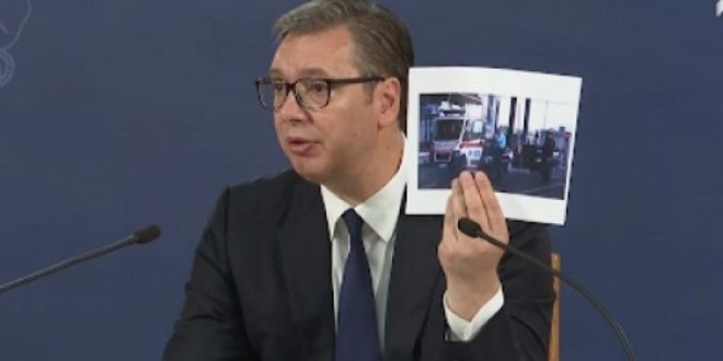 Vuçiq në një paraqitje para mediave të hënën (20 shtator) gjithashtu tregoi një fotografi të një ambulance nga Vranja, e cila, siç tha ai, po transportonte pacientë, dhe e cila u ndalua në pikën e kontrollit administrative në veri të Kosovës.